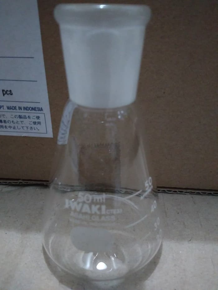 Erlenmeyer Flask Without TS Glass Stopper 50 ml, TS 19/26 Katalog : 5021FK50-19-B Bahan : Glass Volume : 50 ml TS : 19/26